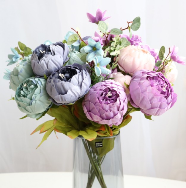 Size:L: 49cm,6 Big poney(8.5cm)+2 poney buds(5cm)+2 Hydrangea +3 plants