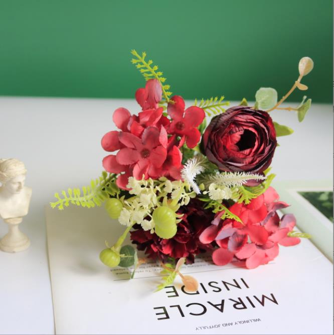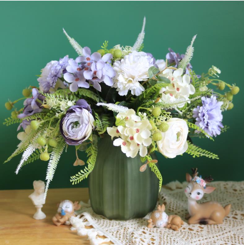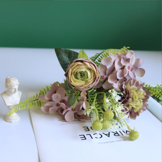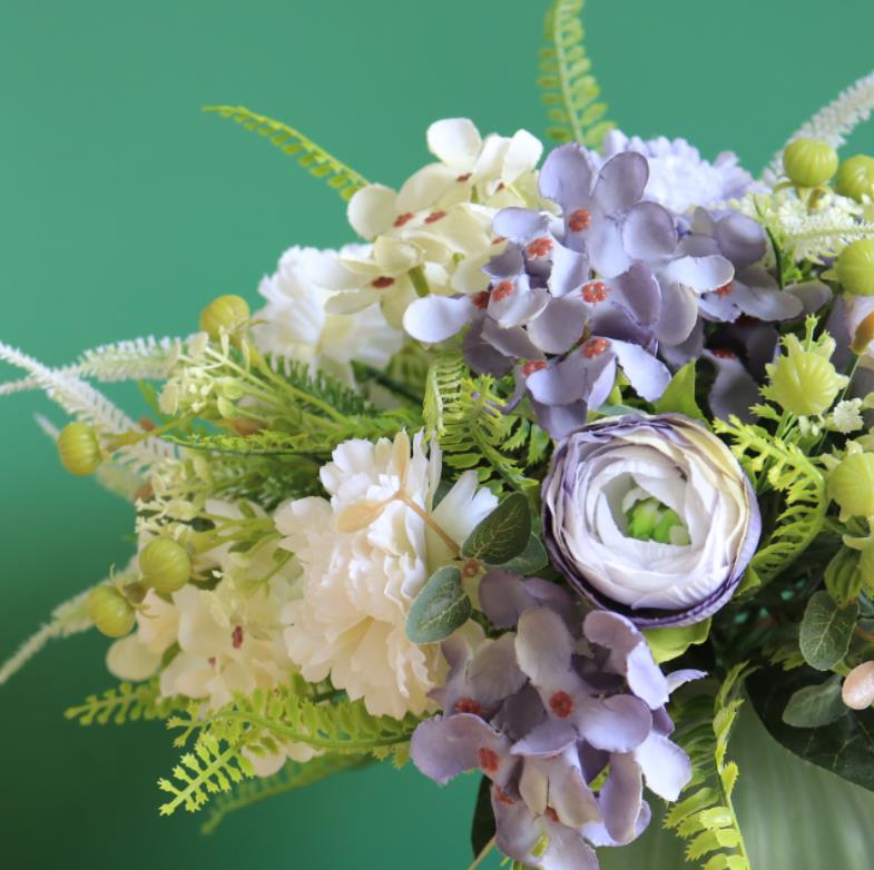 composition :Carnations 1head,dew lotus 1head,Hydrangea 2head ,green bristlegrass 2head,small green fruit 4 head
